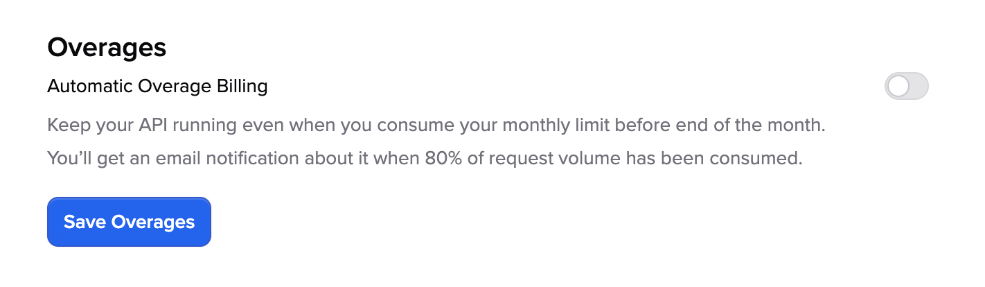 If you ever exceed your paid plan monthly limit, our API won’t stop working thanks to our metered billing feature. In other words, there’s no pressure to move to the next plan before you’re ready. Our API is designed to grow with you!