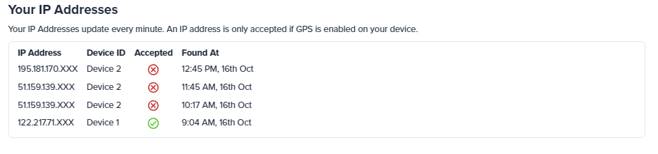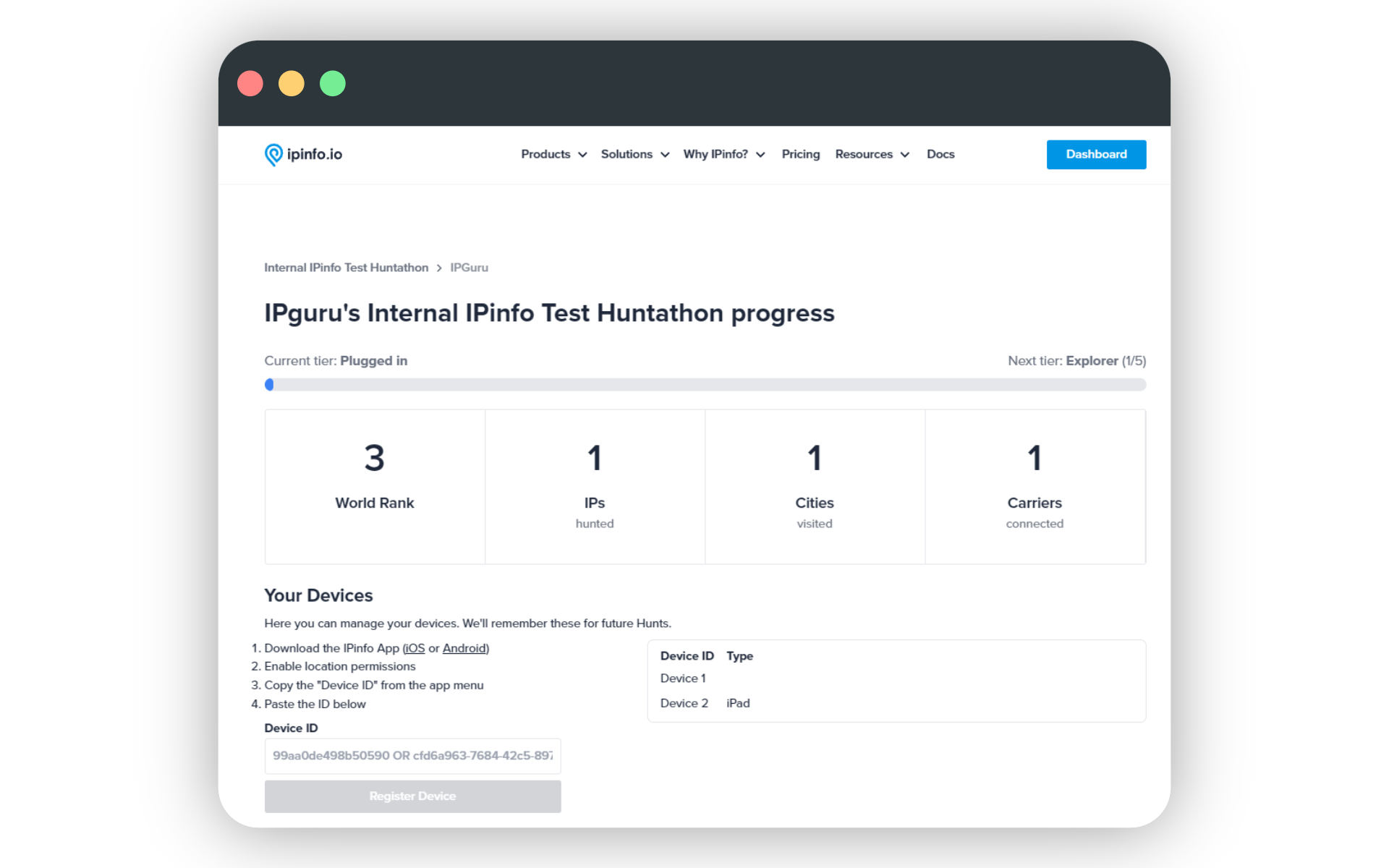 You can use multiple devices running the IPinfo app to collect IP addresses. All the WiFi IPs you collect across your different linked apps will be aggregated in your Great IP Hunt user profile.