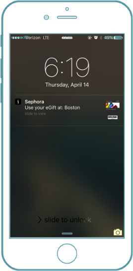 Make-up retailer, Sephora, keeps track of gift cards in their app, so that any time a customer passes by a location, they nudge them to stop by and make a purchase: