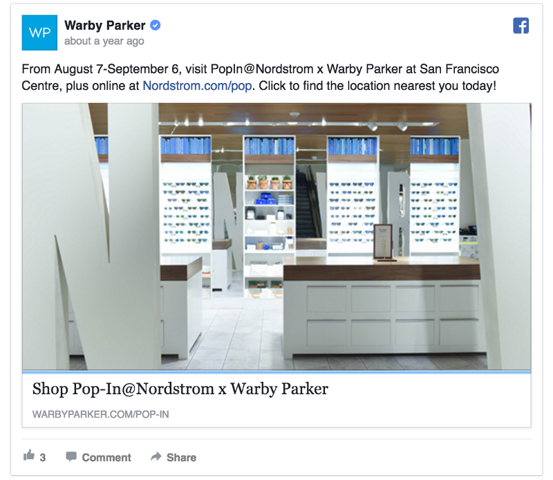 Warby Parker, for instance, sends this social ad to potential customers in the Bay Area: