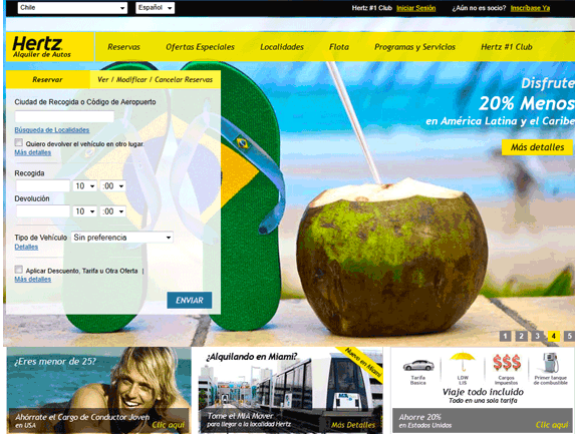 Below, you’ll see two of Hertz’s landing page: The first is for those who live in Singapore, the second is for those who live in Chile.