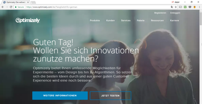 With the American homepage, Optimizely is able to nudge their U.S. audience towards helpful content that will improve their perception of the brand and its authority in the website experimentation. The German page, however, remains untouched displaying the imagery and copy that works best for that location (surely, which was tested).