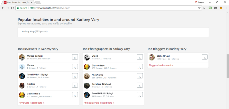 When you navigate to their homepage, you’ll find suggestions for reviewers, photographers and bloggers who are city natives for the site visitor. In Karlovy Vary, you’d see a page that looks like this: