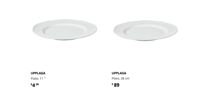 In English-speaking regions, this simple plate is listed as $4.99. But for those purchasing in Mexico, this same plate is 89 pesos, rather than the equivalent price of 101 pesos. In other words, the same plate is less-expensive in Mexico.
