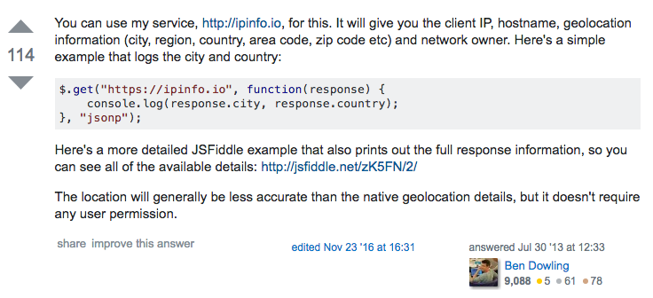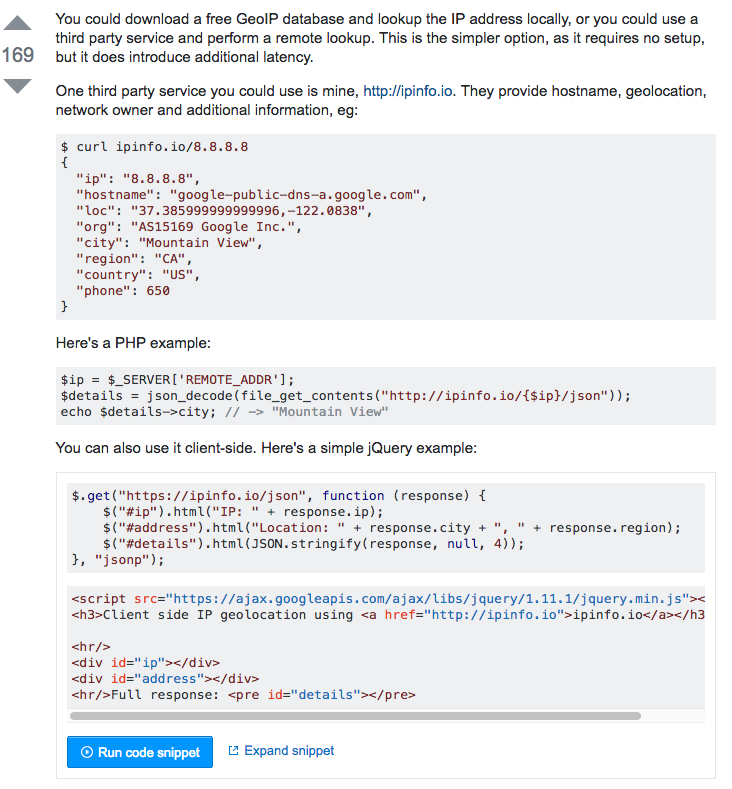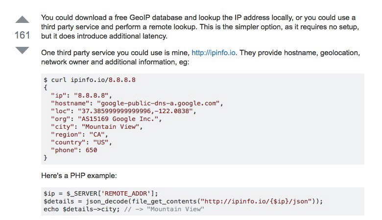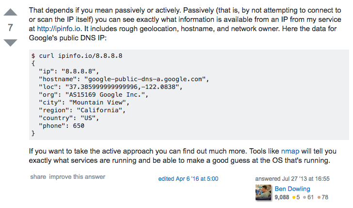 Here’s an example from a thread where someone asked: “What information can I get from an ip address?”