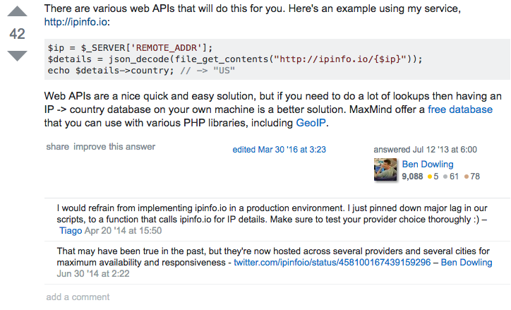 When I decided to turn IPinfo from a side project to a full-time gig, I started to answer whatever questions I could on Stack Overflow to tell people about my product. But at a certain point, I noticed that it wasn’t just me talking about IPinfo. Members of the community were actually beginning to share my product for me: