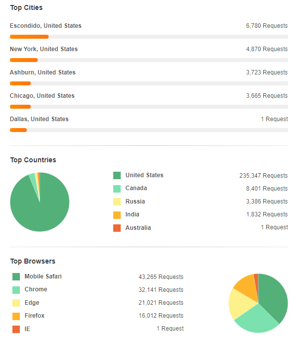 This email contains charts and graphs that show your total API requests, top geolocations (both countries and cities), and top browsers.
