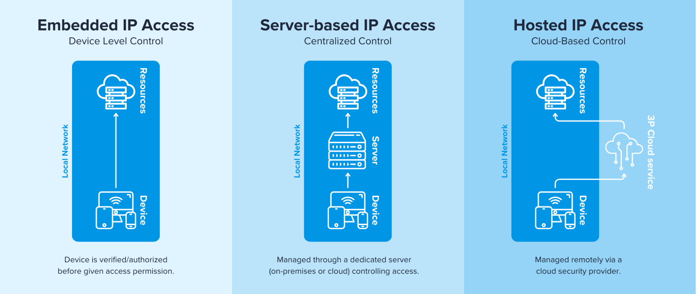 There are several different types of IP-based access control, including embedded IP access, server-based IP access, and hosted IP access, and each is best for different use cases.