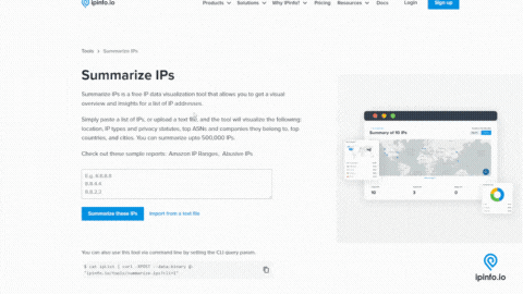 If you are looking for a web UI with interactive features, check out our: IPinfo Summary Tool. Our online summary tool also integrates our mapping tool into a single page.