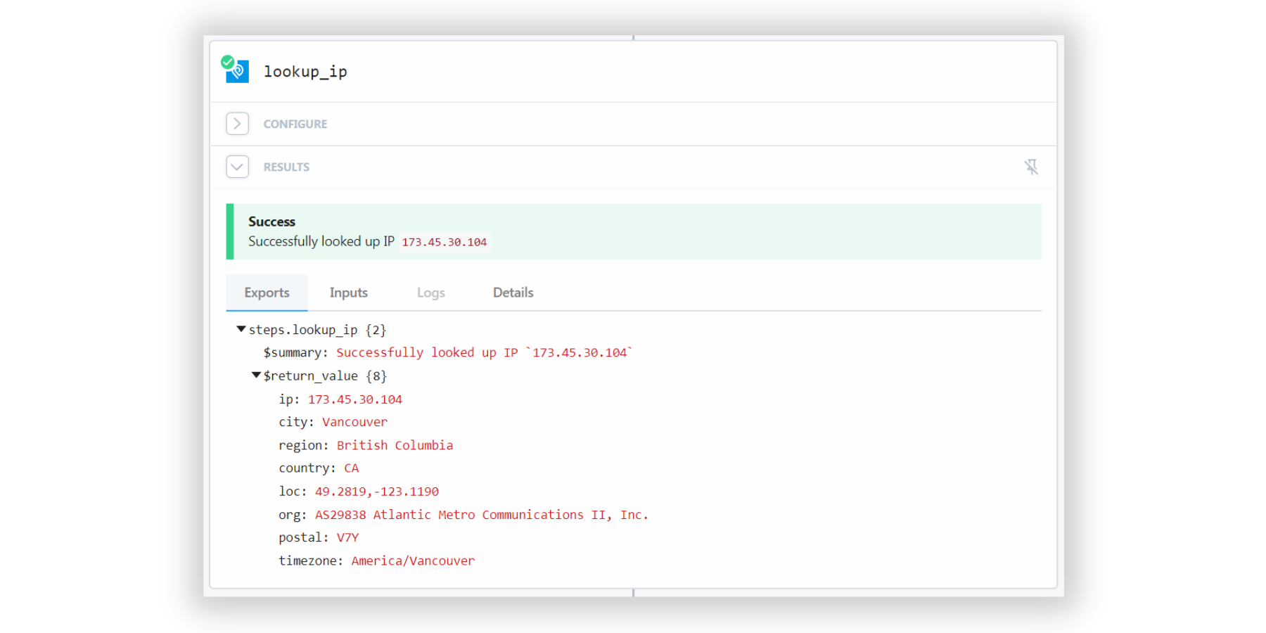 Once you are done, you can test the workflow and see if you are getting IPinfo geolocation correctly.