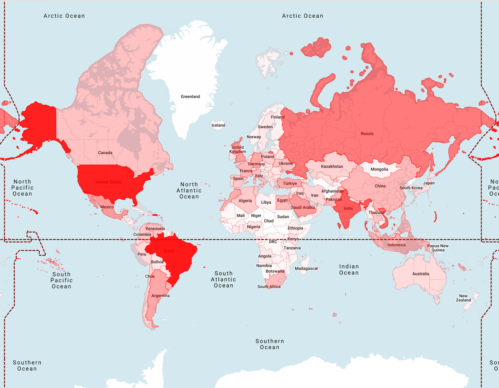Residential proxy usage is heavily concentrated in just a handful of countries. While IPs appear across thousands of networks globally, most of the activity is driven by a small group of high-volume markets — countries where large populations, strong last-mile connectivity, and economic incentives for bandwidth-sharing apps come together.