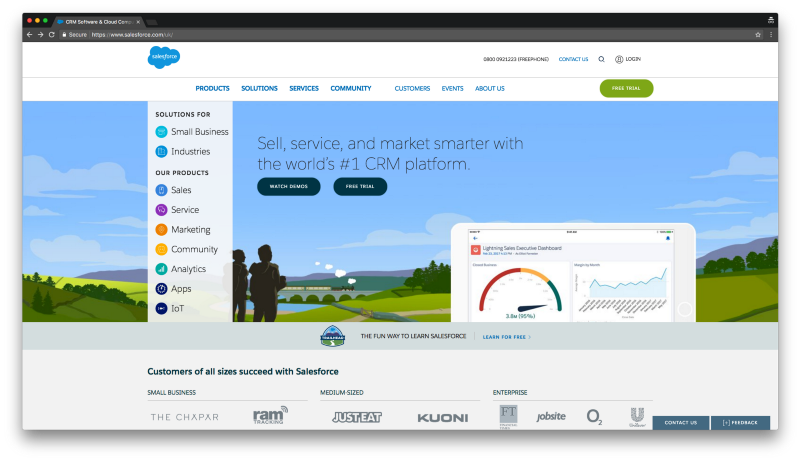At first glance, it looks like Salesforce is doing what Intercom did. Localizing language to fit with the customer in that country. But Salesforce is taking the localization one step further. This is clearer if we look at the page that gets served to UK customers: