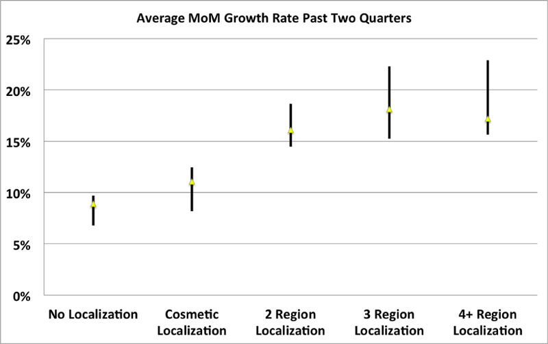 Companies that localized were growing more than those that were either not localizing at all or only doing cosmetic localization. This makes sense: