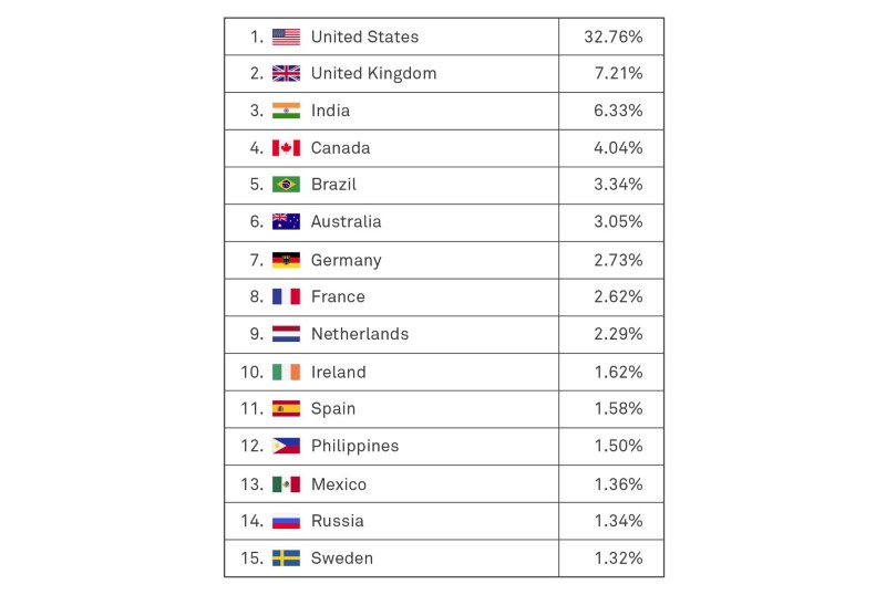 This is where Intercom started. They looked at their analytics and saw that only one-third of their traffic was from the US:
