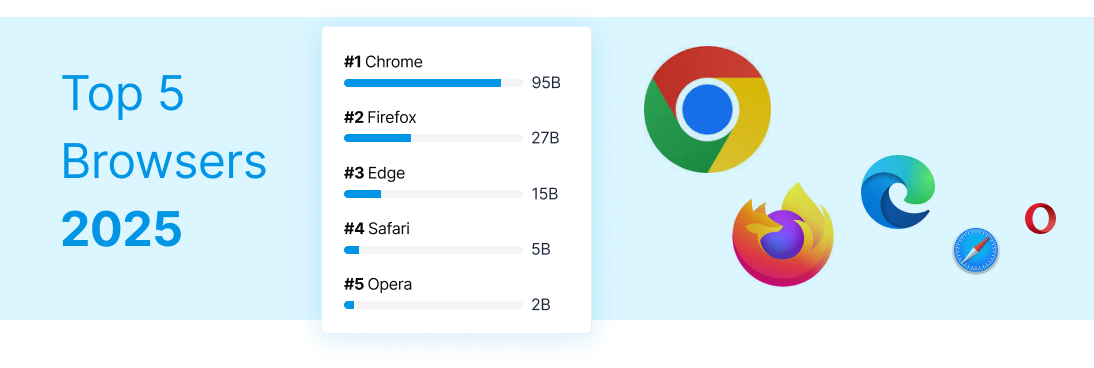 Chrome accounted for almost 100 billion API lookups, vastly outpacing Firefox (27B), Edge (15B), Safari (5B), and Opera (2B) combined.