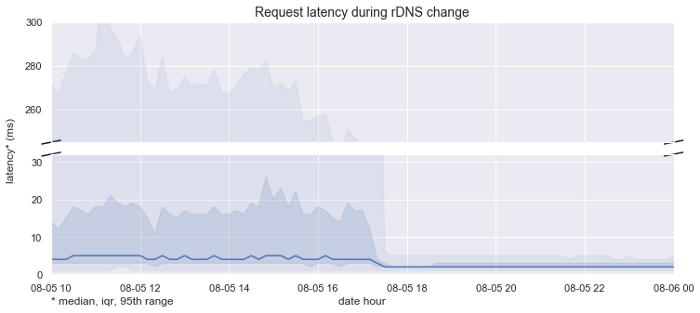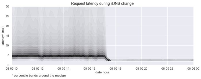 As a result of the changes to how we handle rDNS lookups, we’ve been able to significantly reduce the latency on requests to our API.