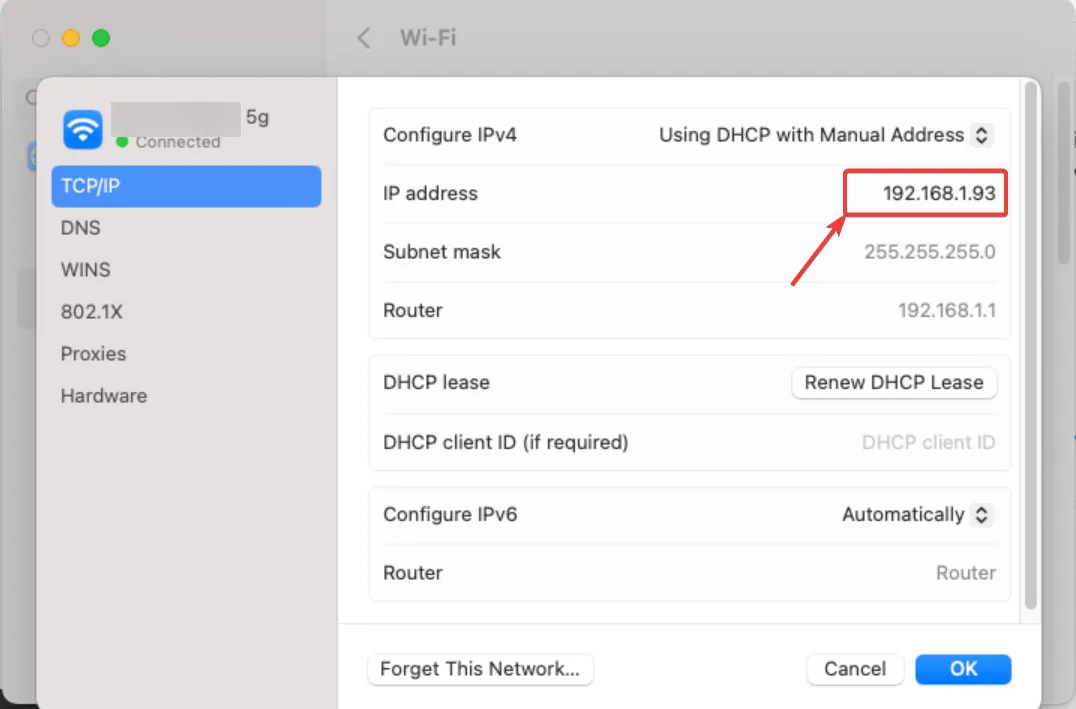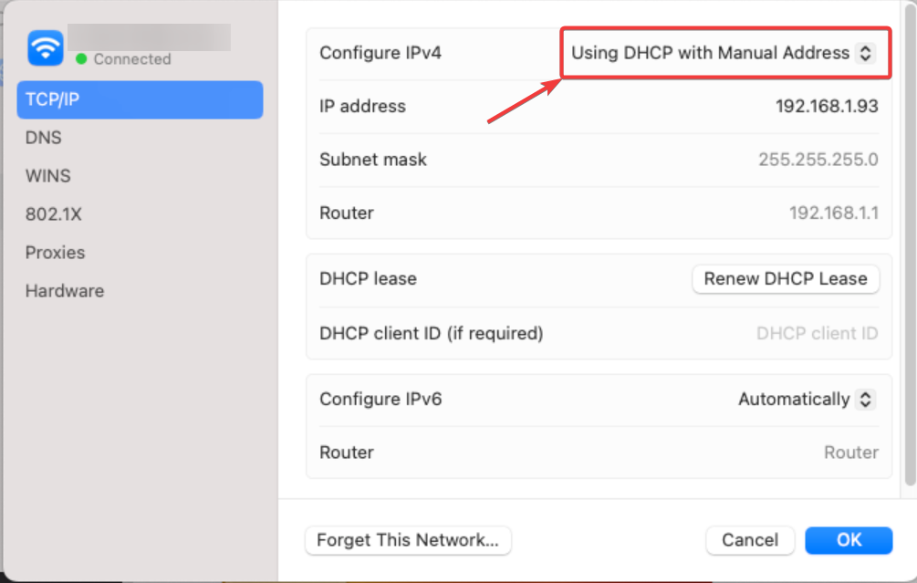 From there, change the setting for IPv4 from DHCP to “Using DHCP with Manual Address."