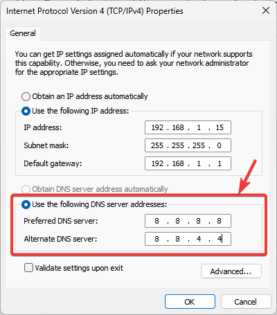 You can now set up the DNS server addresses. You can choose: