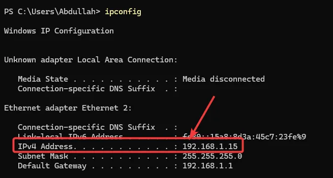 Then you can verify your static IP address from your PowerShell or CMD by running the following command: