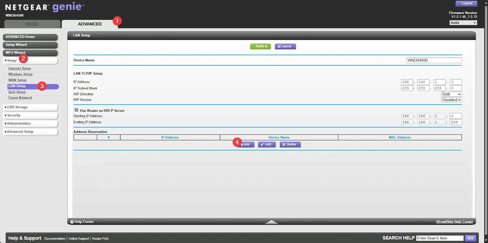 Static IPs can also be set on network router-level settings. For this example, I am using a netgear router as an example.