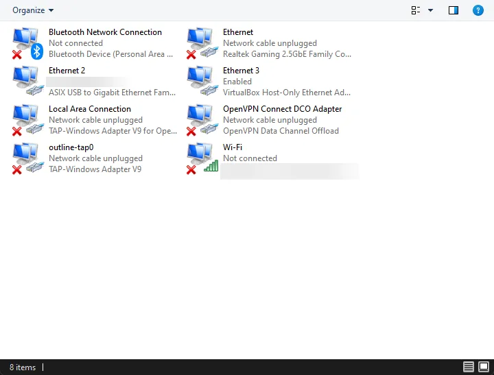 Alternatively, You can also get your active network connections from this Network Connections settings: