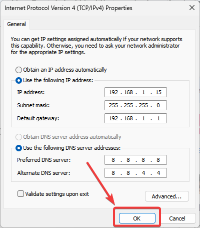 After that save the settings and exit out. You can see the updated static IP address from your network settings or by running the ipconfig command.