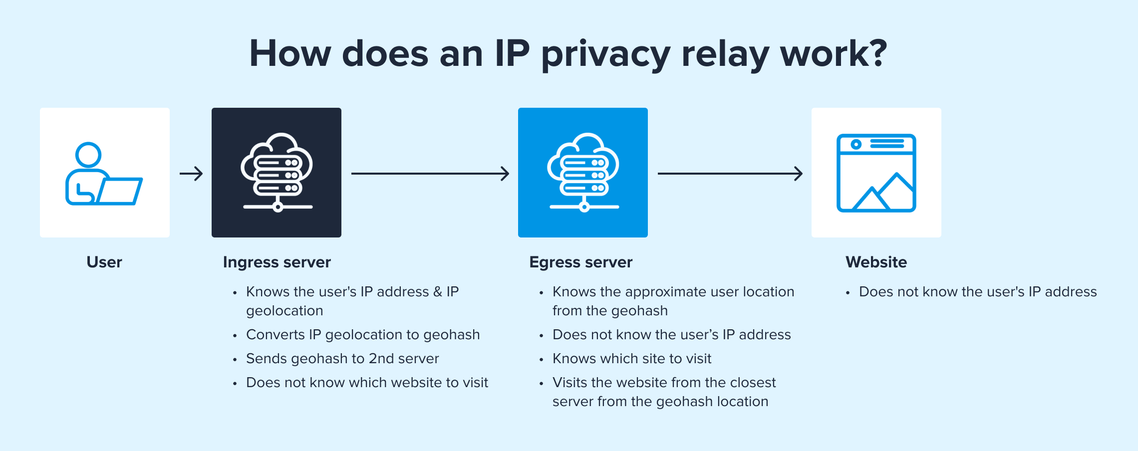 A private relay process thus involves two distinct servers: