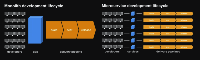 Amazon was one of the first companies to break away from the monolith model. In typical Amazon-fashion, the migration started with a mandate from Bezos, himself. The mandate ordered every team to expose their code through service interfaces — and to only communicate through those interfaces.